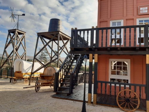Smeštaj u hotelu obuhvata tri sobe u Western Town-u, koje su opremljene unikatnim, ručno izrađenim, drvenim nameštajem koji će Vas ostaviti bez daha. Sobe poseduju bračni ležaj za dve osobe, moderno kupatilo i prostranu terasu sa pogledom na centar kaubojskog grada. Sobe sadrže i TV, i besplatan internet.