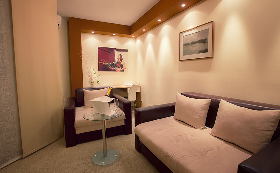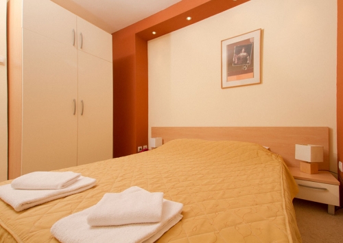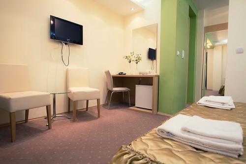 Hotel raspolaže sa 4 lux apartmana (mini bar, lcd televizor, telefon, klima uređaj) i 33 moderno uređene sobe. Svaka soba ima plazma televizor, klima uređaj, telefon. Sobe na II spratu hotela poseduju i produžene krevete koji su pogodni za smeštaj sportista. U čitavom hotela svim gostima je na raspolaganju besplatan wireless internet.