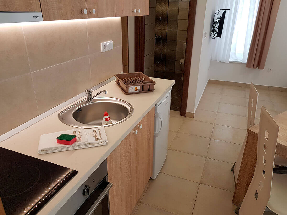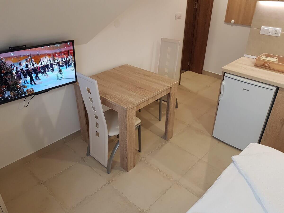 Sve sobe i apartmani imaju centralno grejanje, toplu vodu i bežični internet, TV, kao i kompletno opremljene kuhinje sa ugradnim pločama, frižiderima, aspiratorima.