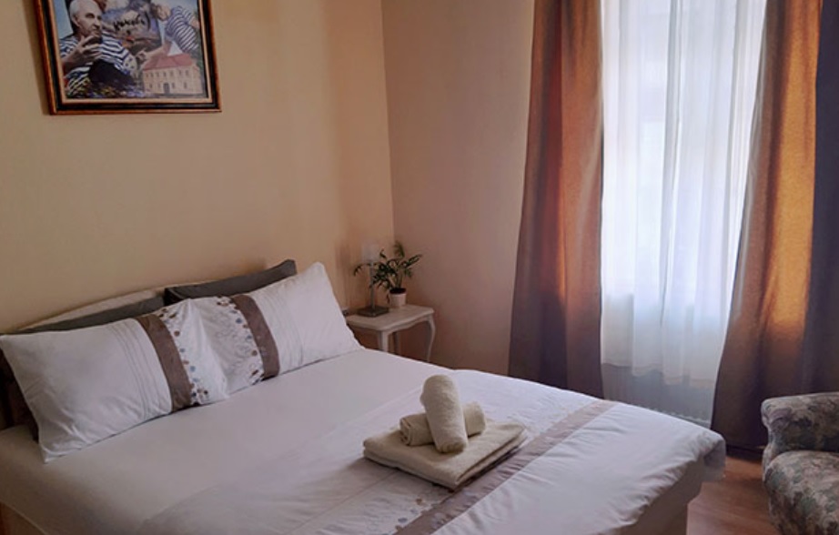 Poseduje 3 spavaće sobe sa 6 kreveta, dnevni boravak, dva kupatila, opremljenu kuhinju sa trpezarijom i balkon sa pogledom na glavnu ulicu. Gostima je na raspolaganju bežični internet, kablovska televizija, veš mašina, fen za kosu i pegla.