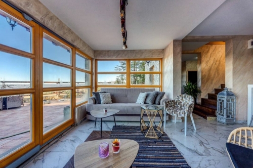 Kuća sadrži četiri sobe, dve dnevne sobe ( jedna dnevna soba je open concept sa kaminom, druga je zastakljena sa direktnim izlazom na bazen), dve kuhinje, četiri kupatila (svaka soba poseduje svoje kupatilo) i tri terase od kojih je jedna sa bazenom.